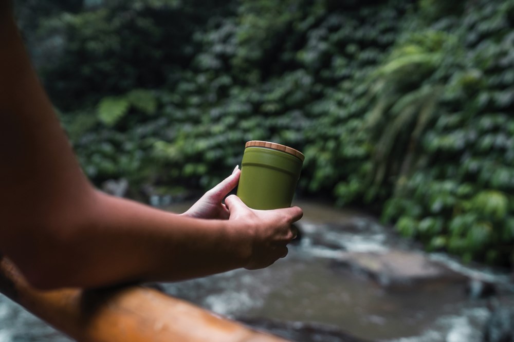 GRS gecertificeerd gerecycled PP mok met bamboe deksel