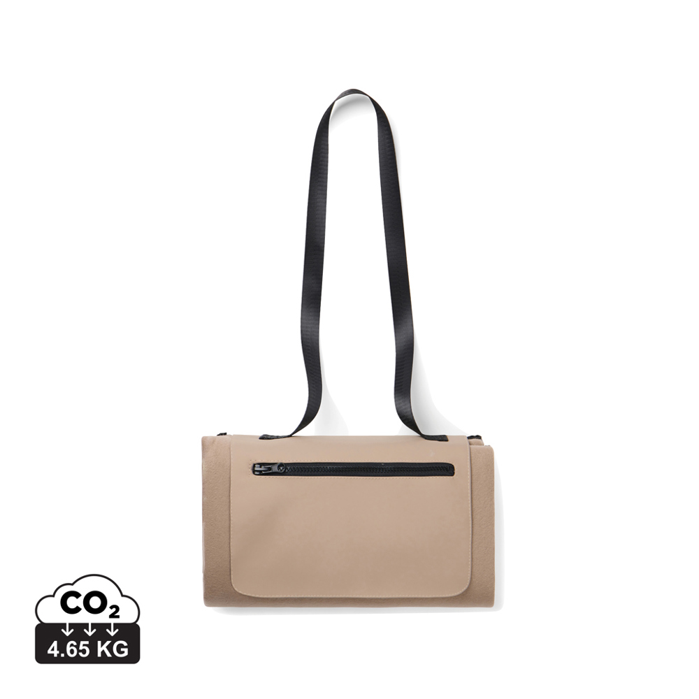 Ga naar buiten en neem de Baltimore picknickdeken met je mee. De deken heeft een zachte fleece bovenzijde voor maximaal comfort en een waterbestendige PEVA-onderlaag die beschermt tegen vocht en kou. Voorzien van een lange handgreep voor gemakkelijk en comfortabel dragen en een praktisch voorvak met rits voor sleutels, telefoon of andere essentials. Afmeting: 150 × 130 cm. Gecertificeerd volgens de RCS‑norm (Recycled Claim Standard), waarmee wordt gegarandeerd dat de volledige toeleveringsketen van gerecyclede materialen gecertificeerd is. Dit product bevat 47% RCS‑gecertificeerd gerecycled polyester.