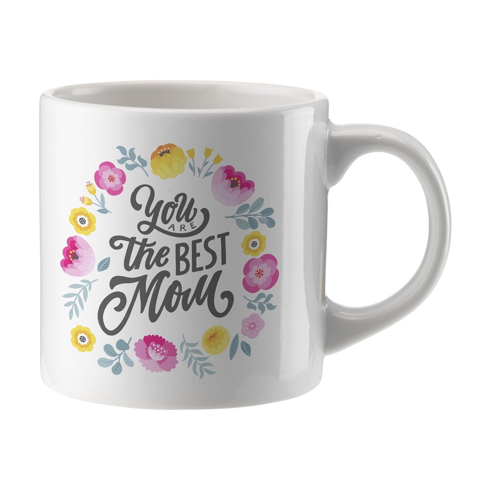 Mok van hoogwaardig keramiek in een prettig, klein formaat. Past onder nagenoeg elk koffieapparaat. De perfecte mok voor alle full colour bedrukkingen, waaronder foto’s. Vaatwasserbestendig. Inhoud 200 ml.