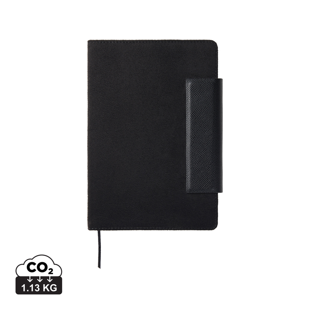 Een stijlvolle A5-notitieboek bestaande uit 160 gelinieerde pagina’s (80 vellen). Het is het perfecte accessoire om mee te nemen naar vergaderingen en om je notities georganiseerd én in stijl bij te houden. Het Marlow-notitieboek combineert een tijdloos ontwerp met gerecycleerd kunstleer, PU-details en gerecycled papier. Het notitieboek is voorzien van een praktische en elegante magnetische sluiting. Gecertificeerd volgens de GRS-norm (Global Recycled Standard), waarbij de certificering garandeert dat de volledige toeleveringsketen van de gerecyclede materialen gecertificeerd is. Het totale gerecyclede gehalte is gebaseerd op het totale productgewicht. Dit product bevat 50% GRS-gecertificeerd gerecycled papier en 6% GRS-gecertificeerd gerecycled polyester.