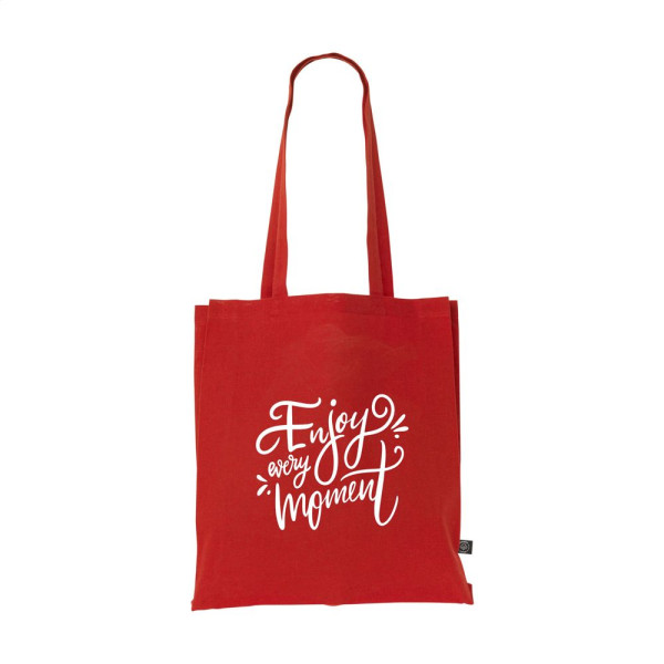 Stevige winkeltas met lange hengsels, van 80% gerecycled katoen en 20% gerecycled polyester (150 g/m²). GRS-gecertificeerd. Totaal gerecycled materiaal: 100%. Inhoud ca. 12 liter.