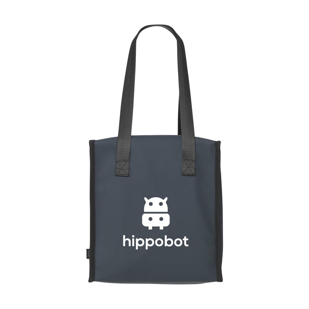 Stevige en stoere koeltas gemaakt van waterafstotend PU, 7% gerecycled PU en 15% gerecycled polyester. Het materiaal kan tegen een stootje en is bovendien gemakkelijk schoon te houden. De binnenzijde van de tas is bekleed met aluminiumfolie voor het koelhouden van de inhoud. De koeltas heeft een ritssluiting en twee stevige handgrepen. Aan de voorzijde zit een extra opbergvak - handig voor je telefoon, portemonnee of iets anders dat niet koel bewaard hoeft te worden. RCS-gecertificeerd. Totaal gerecycled materiaal: 22%. Inhoud ca. 9 liter.