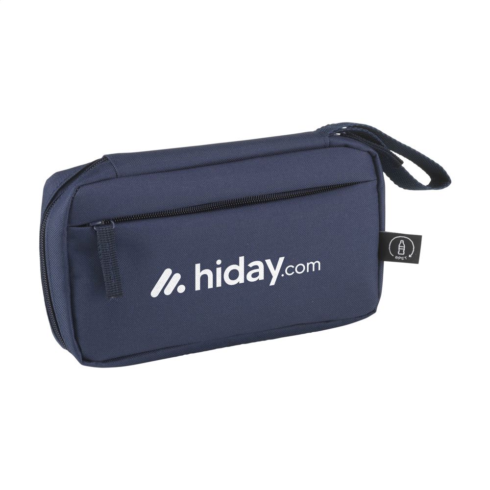 Etui voor het georganiseerd en overzichtelijk opbergen van kabels, opladers en technische accessoires. Gemaakt van 600D RPET polyester. De binnenzijde biedt ruime opbergmogelijkheden, verdeeld over verschillende (mesh) vakken. Met ritssluiting, een extra ritsvak aan de buitenzijde en een praktische draaglus. Ideaal om mee te nemen op reis, maar ook handig voor thuis of op kantoor. GRS-gecertificeerd. Totaal gerecycled materiaal: 88%.