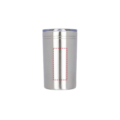 Dubbelwandige constructie, vacuüm geïsoleerd. Doorzichtige drukdeksel met een schuifsluiting. Te gebruiken als beker of drankisolator. Volume 330 ml.