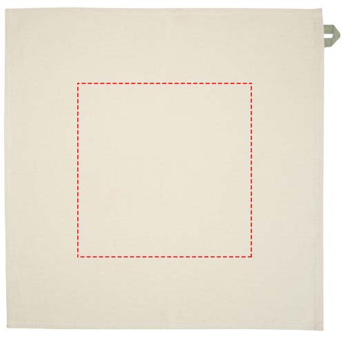 Keukenhanddoek van 100% GRS gecertificeerd gerecycled katoen van 200 g/m² , met een opvallende contrasterende lus. Handdoekformaat: 50 x 50 cm.