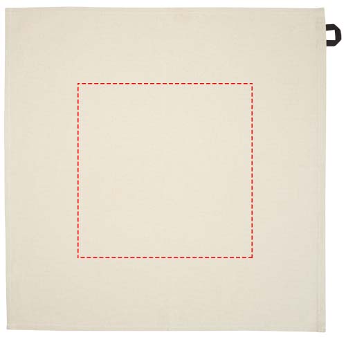 Keukenhanddoek van 100% GRS gecertificeerd gerecycled katoen van 200 g/m² , met een opvallende contrasterende lus. Handdoekformaat: 50 x 50 cm.