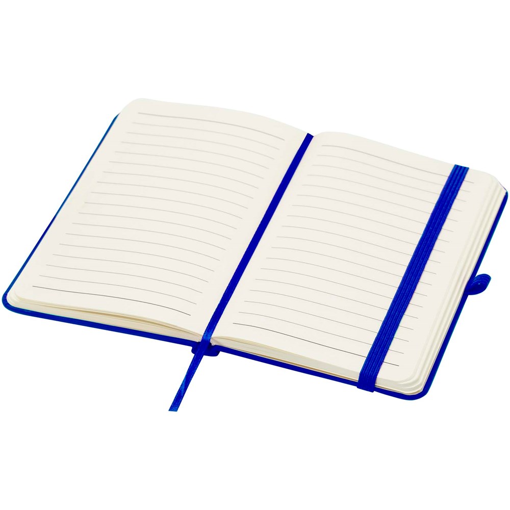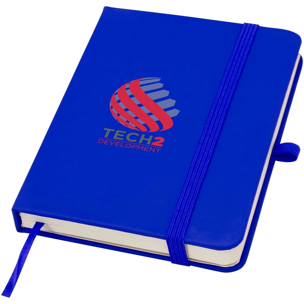 Het Spectrum Plus A6 notitieboek met harde kaft en afgeronde hoeken is niet alleen onmisbaar op kantoor, maar ook een geweldige kans om je merk te promoten. Het kartonnen notitieboek heeft een zacht aanvoelende kaft en 80 gelinieerde crèmekleurige vellen van 70 g/m², ideaal voor het opschrijven van snelle ideeën of lange notities. Het notitieboek heeft een pennenlus, elastische sluiting, lintmarkering en accordeonvak.