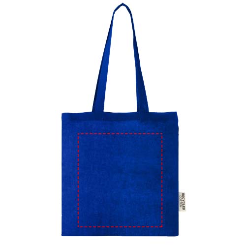 De Madras draagtas gemaakt van 100% GRS gecertificeerd gerecycled katoen is de perfecte tas om weg te geven tijdens elk evenement, congres of om te gebruiken als boodschappentas voor kleine boodschappen. De katoenen dichtheid van 140 g/m² katoen maakt de tas stevig, duurzaam en geschikt om zware voorwerpen in het hoofdvak te dragen. Met de 30 cm lange schouderhandgrepen is deze draagtas makkelijk mee te nemen. De printmethoden die beschikbaar zijn voor deze draagtas zijn ook GRS-gecertificeerd, zodat de hele leveringsketen transparant en gecertificeerd is. Gemaakt in India. Geschikt voor een gewicht tot 5kg.