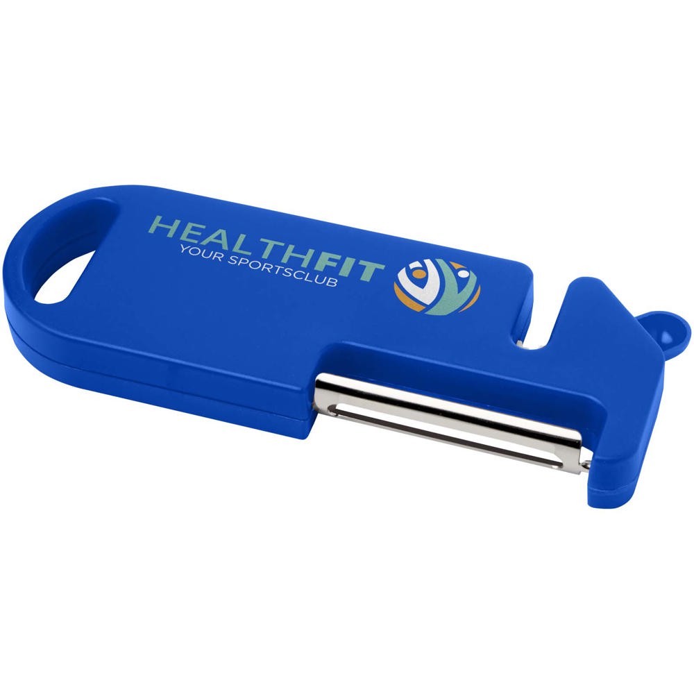 Dit multifunctionele keukengereedschap combineert vier essentiële functies in één compact ontwerp. Gemaakt van gerecycled plastic en voorzien van een dunschiller, flesopener, messenslijper en een puntig uiteinde voor het verwijderen van aardappelvlekjes. Een ingebouwd ophanggat maakt opbergen eenvoudig. Praktisch en ruimtebesparend, een veelzijdige must-have voor elke thuiskok.