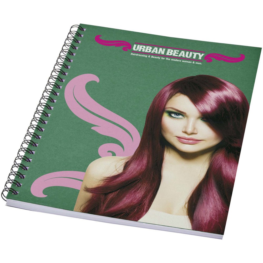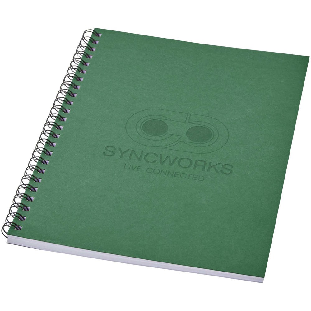 Geef je notities wat kleur met dit A5 spiraal notitieboek. Het bevat 50 vellen blanco 80 g/m2 gerecycled papier en een 320 g/m2 kartonnen cover in verschillende kleuren. Je kunt de pagina's van dit veelzijdige notitieboekje aanpassen aan elk gewenst ontwerp - dus of je nu gelinieerd papier, vierkanten of stippen wilt - alles is mogelijk! Vervaardigd met verantwoord geproduceerde materialen. Gemaakt in het Verenigd Koninkrijk.