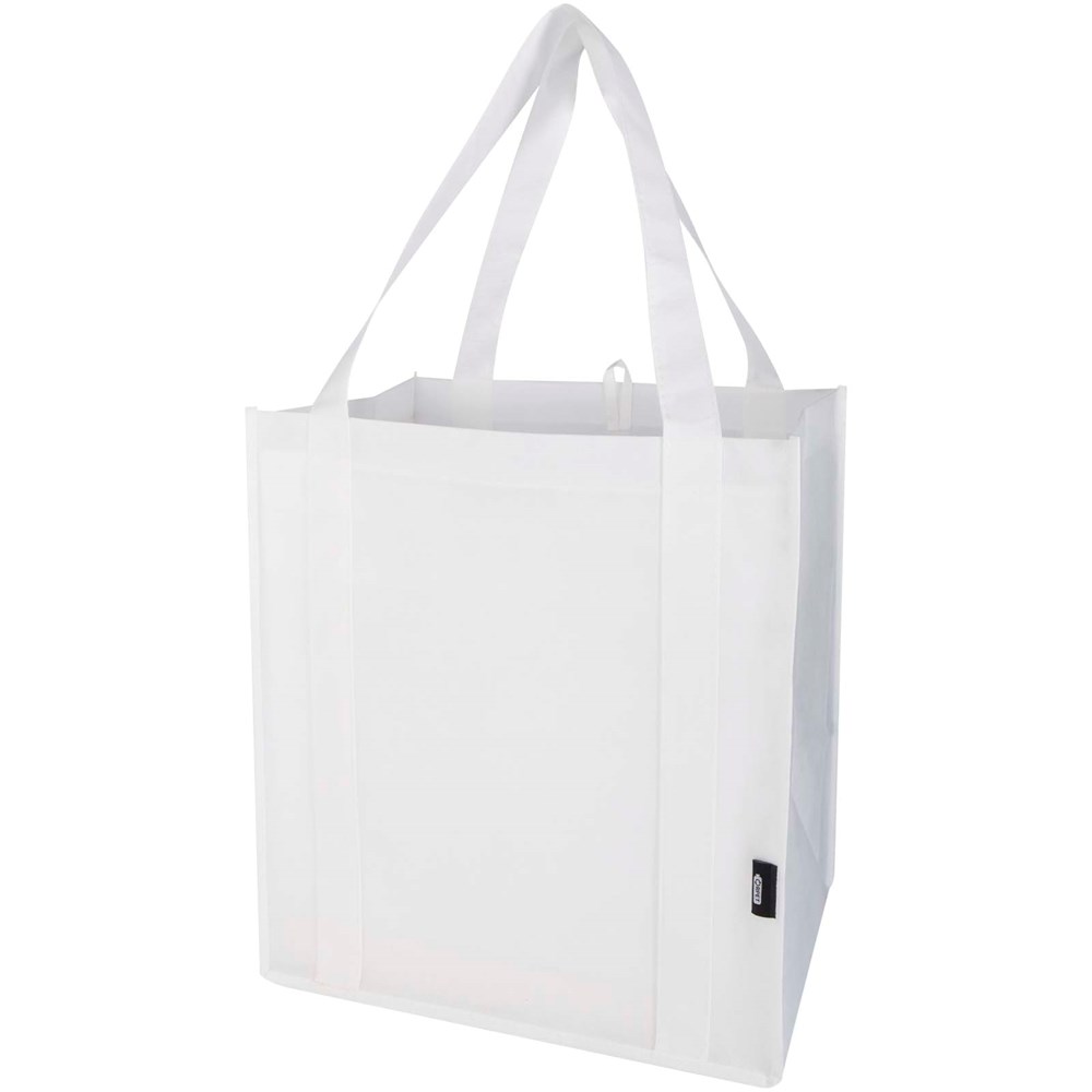 Gemaakt van duurzaam en scheurbestendig niet-geweven RPET. De Liberty GRS gecertificeerde gerecyclede draagtas beschikt over een ondersteunende bodem, waardoor hij veelzijdig en stevig is. De draagtas heeft een groot hoofdvak en 25 cm lange handvatten. Inhoud: 29 liter. Geschikt voor een gewicht tot 12 kg.