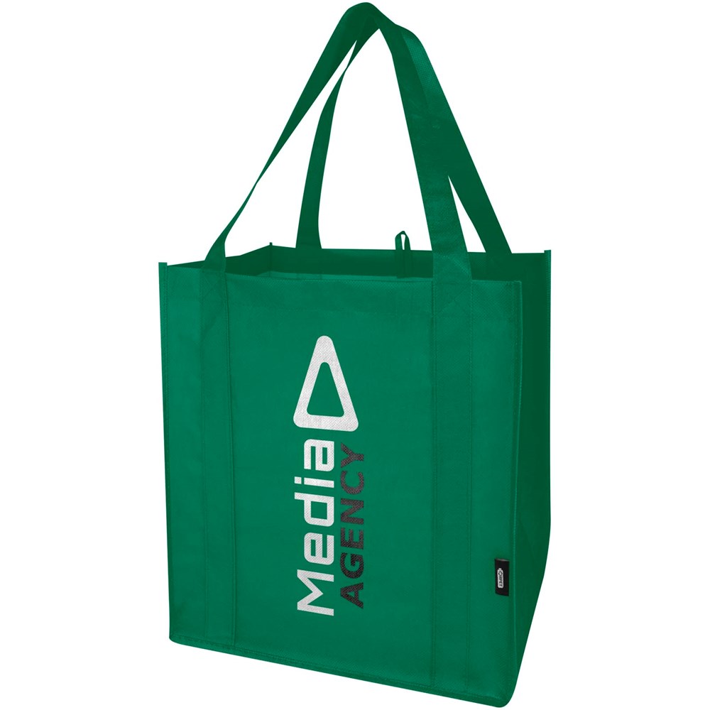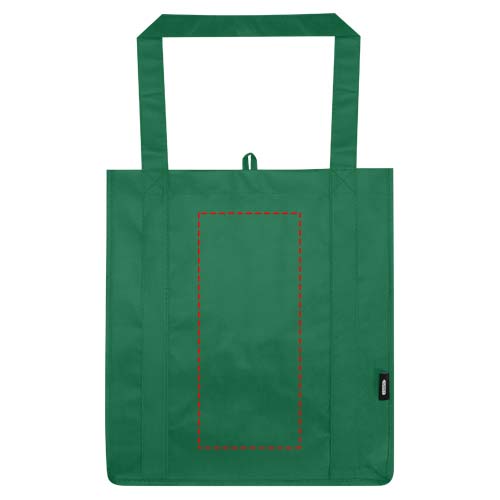Gemaakt van duurzaam en scheurbestendig niet-geweven RPET. De Liberty GRS gecertificeerde gerecyclede draagtas beschikt over een ondersteunende bodem, waardoor hij veelzijdig en stevig is. De draagtas heeft een groot hoofdvak en 25 cm lange handvatten. Inhoud: 29 liter. Geschikt voor een gewicht tot 12 kg.
