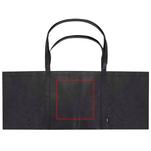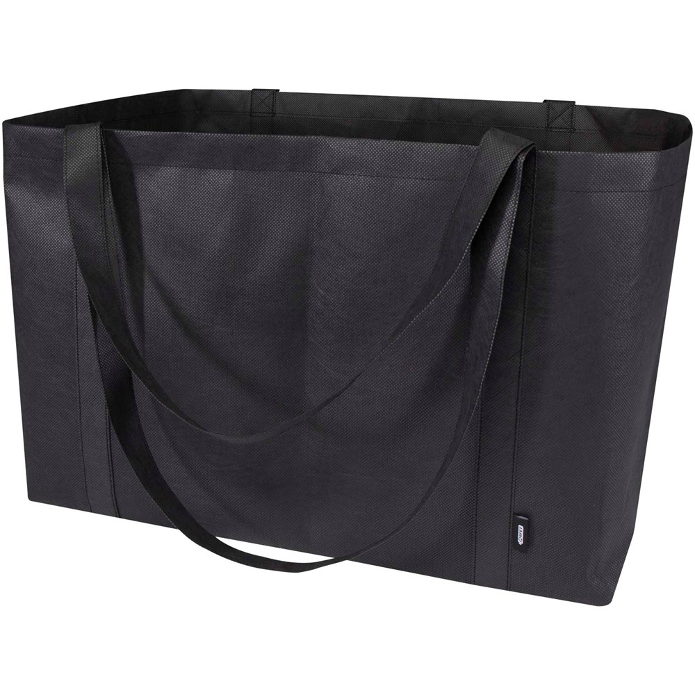 De Jumbo GRS gecertificeerde gerecyclede tas is gemaakt van duurzaam en scheurbestendig non woven RPET en biedt een extra grote capaciteit van maximaal 65 liter voor verschillende activiteiten, zoals grote boodschappen of een dagje strand of park. Met versterkte korte handgrepen (24 cm) en lange handgrepen (37 cm) voor maximaal draagcomfort. Gemakkelijk op te vouwen en op te bergen als je hem niet gebruikt. Geschikt voor een gewicht tot 15 kg.