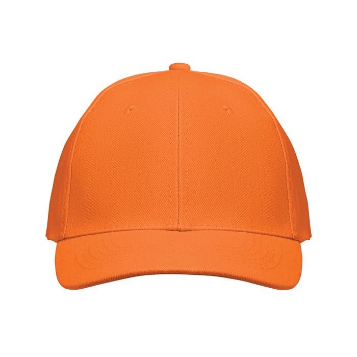 Baseballpet met 6 panelen van geborsteld katoen 260gr/m² met zilverkleurige stalen gesp en 6 geborduurde oogjes in bijpassende kleur. Maat 7 1/4.