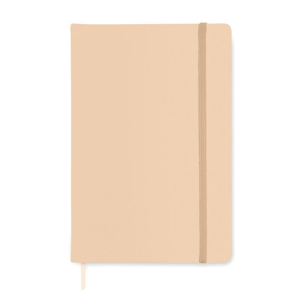 A5 notitieboek met harde PU kaft. Gebonden. 192 pagina's van gelinieerd gerecycled papier (96 vellen). Bijpassende elastische sluitingsband en paginamarkering met lint. FSC®-certified | FSC MIX CREDIT, P7.1, FSC-C213206