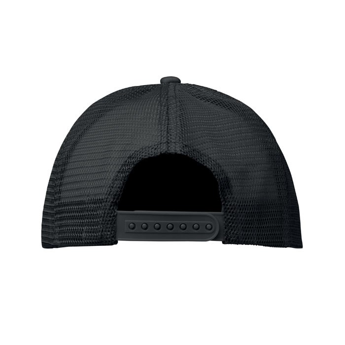 Truckers baseballpet van polyester 140-150 gr/m²met verstelbare sluiting. Witte voorzijde en gekleurde klep van polyester jersey met schuimrug. 5 Panelen. Andere panelen in gekleurde mesh. Size 7 1/4