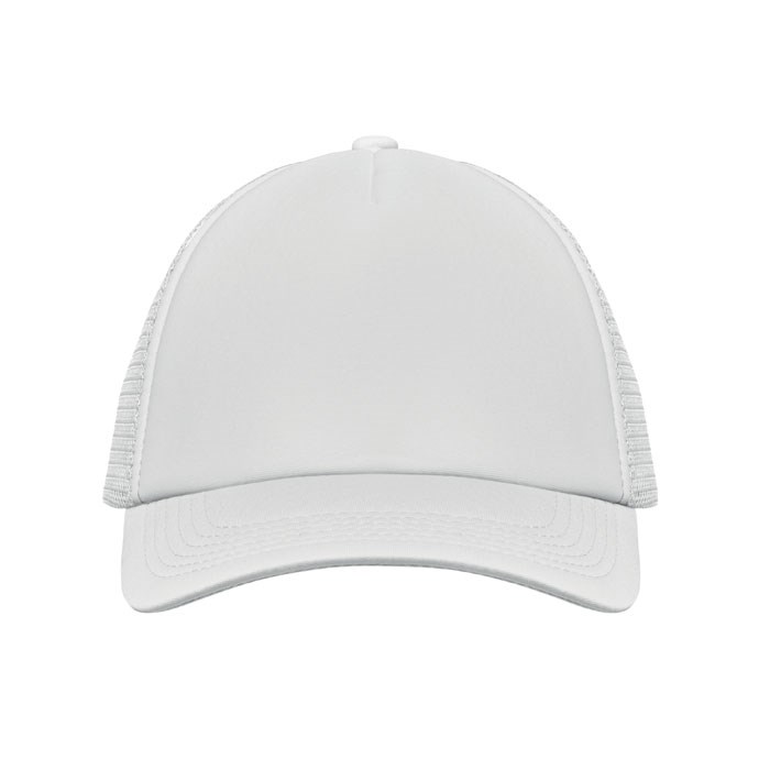 Truckers baseballpet van polyester 140-150 gr/m²met verstelbare sluiting. Witte voorzijde en gekleurde klep van polyester jersey met schuimrug. 5 Panelen. Andere panelen in gekleurde mesh. Size 7 1/4