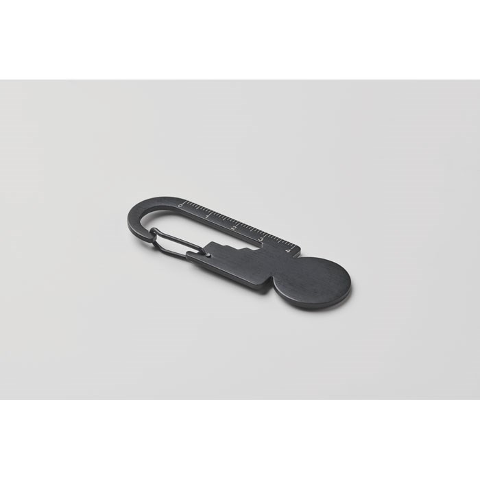 Winkelwagenmuntje met sleutelhanger van gerecycled roestvrij staal (90% gerecycled roestvrij staal en 10% roestvrij staal) met multifunctioneel gereedschap zoals flesopener, liniaal en inbussleutel 5,5mm, 7mm en 8mm.