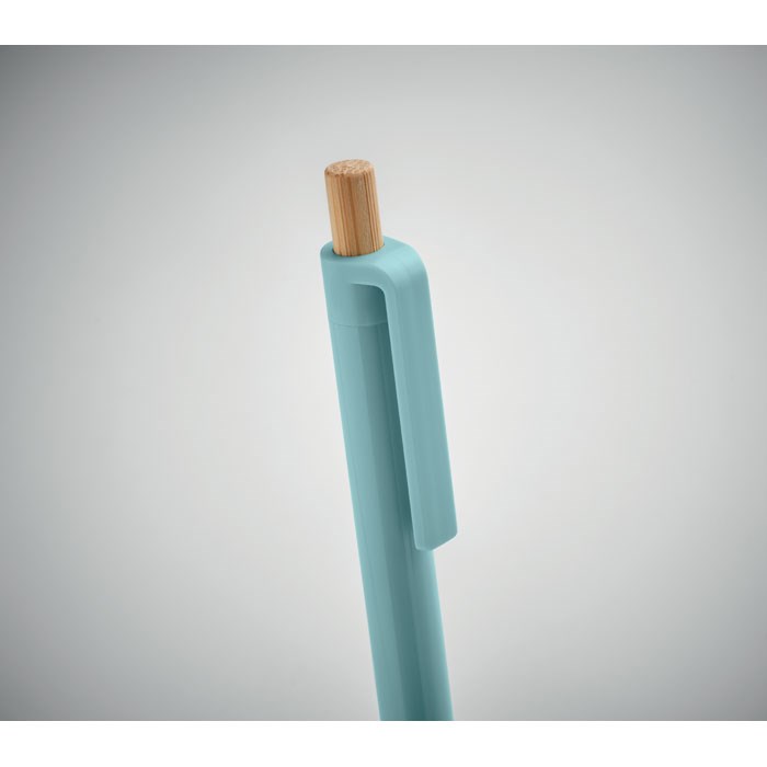 Balpen van gerecycled ABS met bamboe drukknop. Blauwe inkt.