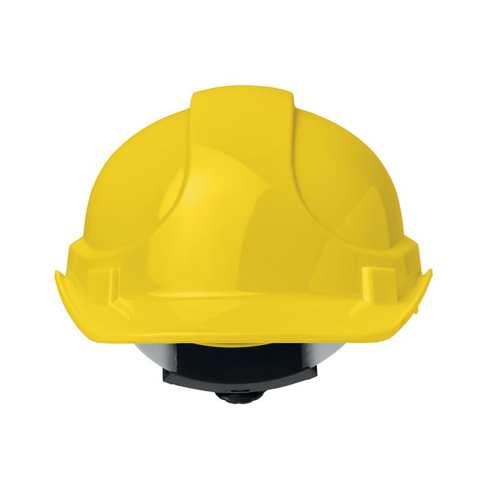 Veiligheidshelm in ABS voor bouwvakkers en magazijnen. Voorzien van ventilatieopeningen, afneembare kinband en zweetband. Verstelbare hoofdband (51-63cm). EN397