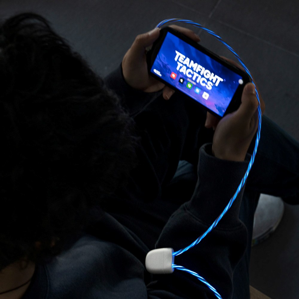 De Xoopar Light up oplaadkabel, 2x 50cm lang, biedt naadloos laden en CarPlay-functionaliteit. Dubbele in-/uitgang, tot 27W snel laden. LED-snelheid geeft laadsnelheid aan. Van gerecycled plastic.