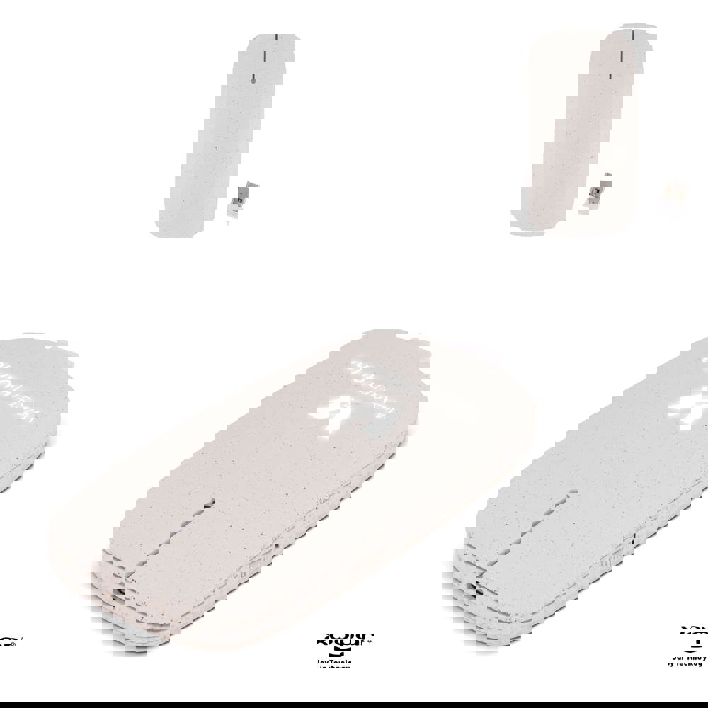 De Pokket-muis is een groen alternatief voor het werken met de computer. Deze promotionele klassieker met groot bedrukkingsgebied en met draadloze connectie is beschikbaar in biologisch afbreekbaar kunststof en tarwe materiaal.