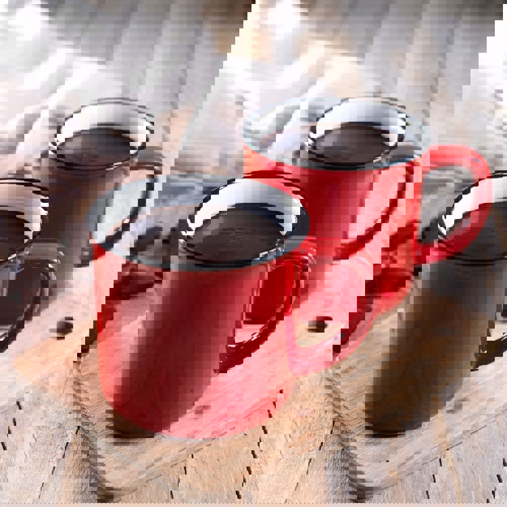 Deze keramische mok in emaille-stijl combineert vintage charme met levendige kleuren. Perfect voor koffie, thee of elk warm drankje, het heeft een klassiek ontwerp met een glanzende afwerking en een zwarte rand, die de essentie van traditionele emaille mokken uitstraalt. Ideaal voor thuis of op kantoor, het voegt een tijdloze uitstraling toe aan elke mokkencollectie.