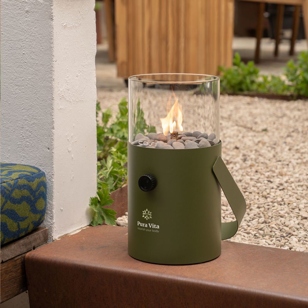 Gaslantaarn van het merk Cosi. Deze gaslantaarn is van stevig metaal, afgewerkt met een poedercoating, en een transparant glas. Een unieke sfeermaker voor in de tuin en in huis. Dit luxe tafelmodel zet je, dankzij de handige draaghendel, overal neer. De lantaarn werkt op een 190 gram gascartouche propaan/butaangas (niet meegeleverd). Branduren: 5 tot 6 uur op één gascartouche. Inclusief transparant glas en kiezelstenen. Per stuk verpakt.