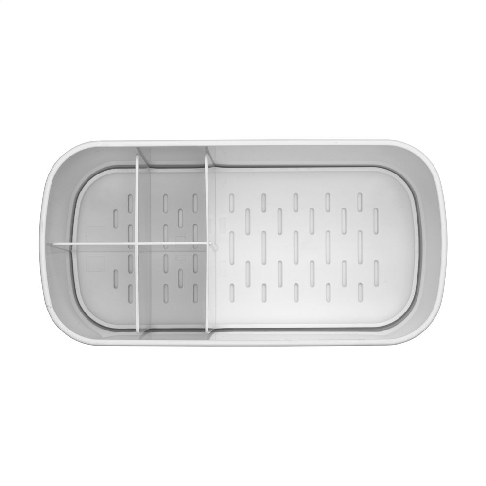 Praktische kunststof organiser voor de badkamer van het merk Brabantia. Compact design met 4 kleine vakken en 1 groot vak. Voor het overzichtelijk, gescheiden en rechtop opbergen van o.a. tandpasta, een tandenborstel, kam en andere accessoires. Alles blijft schoon en droog. De uitneembare inzet heeft gaatjes voor ventilatie en het afvoeren van water. Met antislip onderzijde. Gemaakt van corroseriebestendige materialen, dus ideaal voor vochtige ruimtes. Gemakkelijk schoon te maken. 100% recyclebaar. Met 5 jaar fabrieksgarantie.