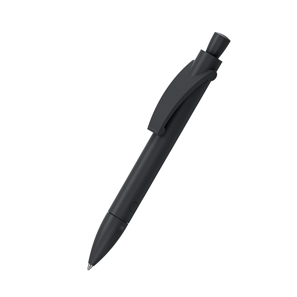 De Grande matt recycling is een Drukknop-balpen. Materialen en oppervlakken: Punt, schacht, clip en drukknop: Kunststof (rABS) mat, gerecycled. Navulbuis: Gerecycled polypropyleen (rPP). Standaard kleuren: Schacht, bovendeel en clip: te combineren uit 9 kleuren. Opmerking: Doordat gebruik wordt gemaakt van gerecyclede grondstoffen, kunnen zelfs in afzonderlijke onderdelen van een product kleurafwijkingen voorkomen. : vanaf 5000 stuks; vanaf 25.000 stuks zonder PMS-toeslag. Standaard vulling: Silktech L (3 000 m), blauw of zwart, vulling optioneel: Silktech XL, Multifill P, Multi-Gel.