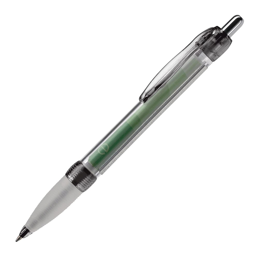 Transparante balpen met rubberen grip. Met full-colour banner bedrukking aan twee zijden. Blauwschrijvende X20 vulling. Bedrukking op de houder of clip mogelijk.