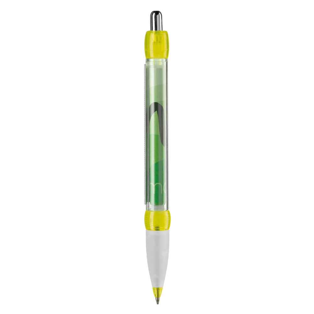 Transparante balpen met rubberen grip. Met full-colour banner bedrukking aan twee zijden....meer