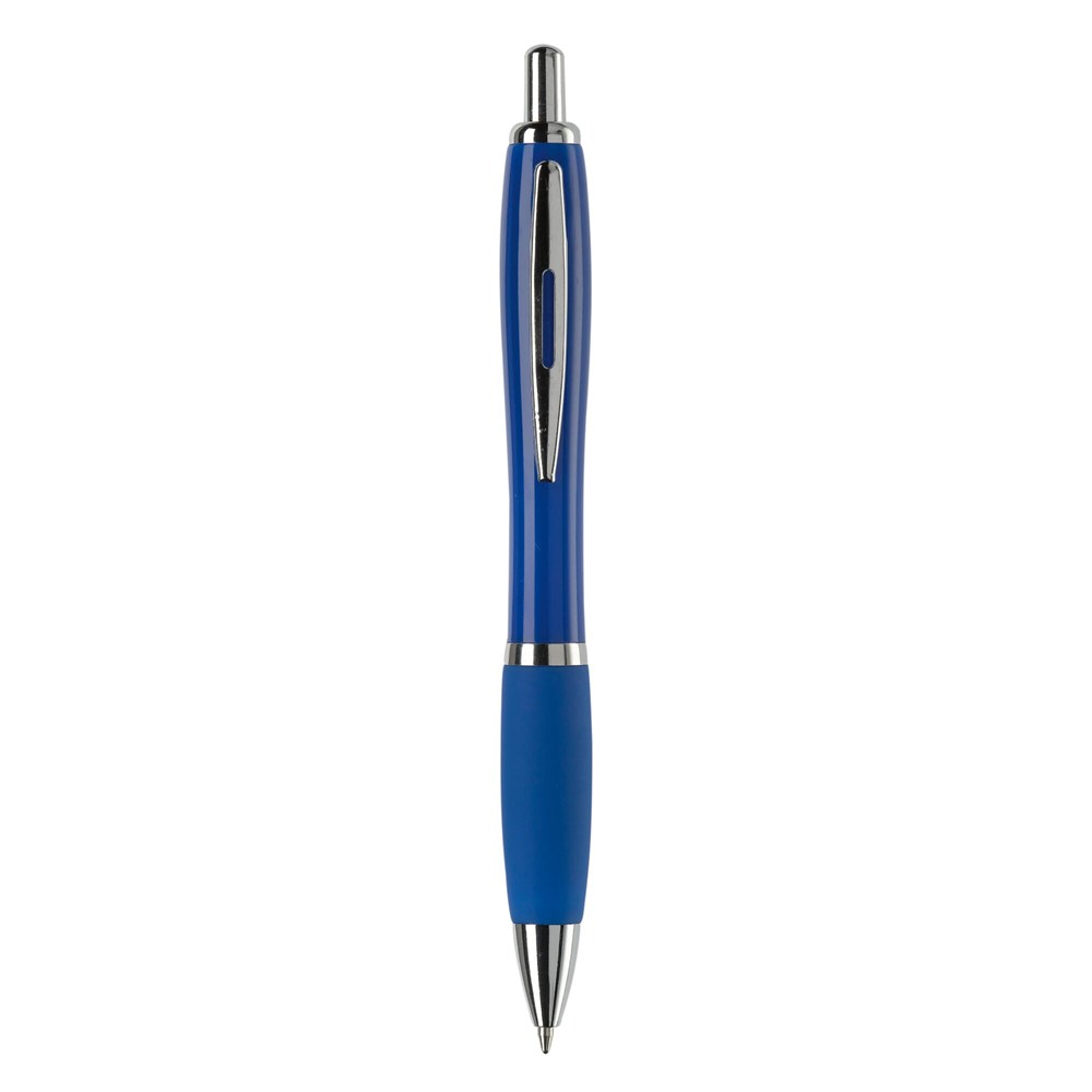 Hardcolour balpen met metalen clip, metal look drukknop, tussenring en penpunt. De pen bevat een blauwschrijvende Jumbo vulling. Vanaf 10.000 stuks andere kleurcombinaties mogelijk.