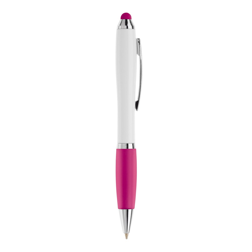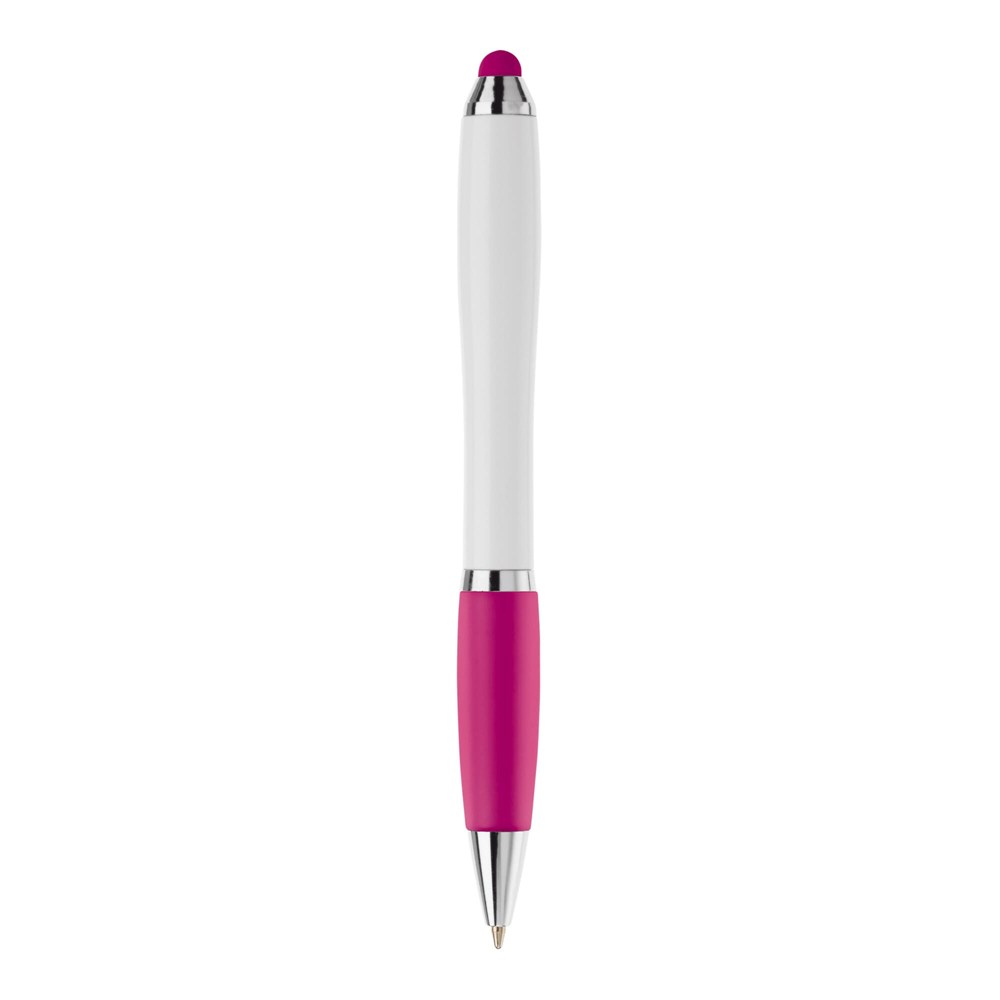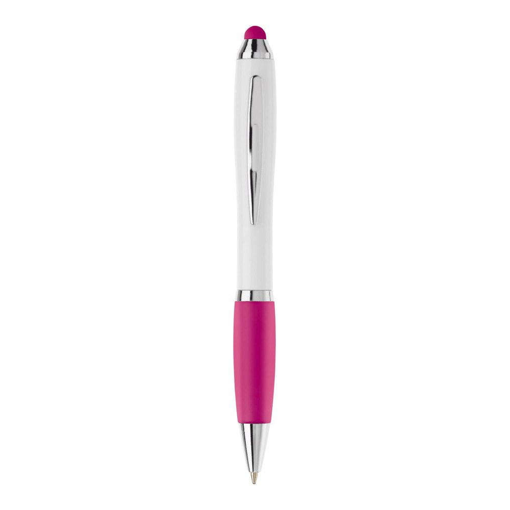 Balpen met touchscreen punt en frosty grip, draaimechanisme en metalen punt, metal look ring en clip. Blauwschrijvende X20 vulling.