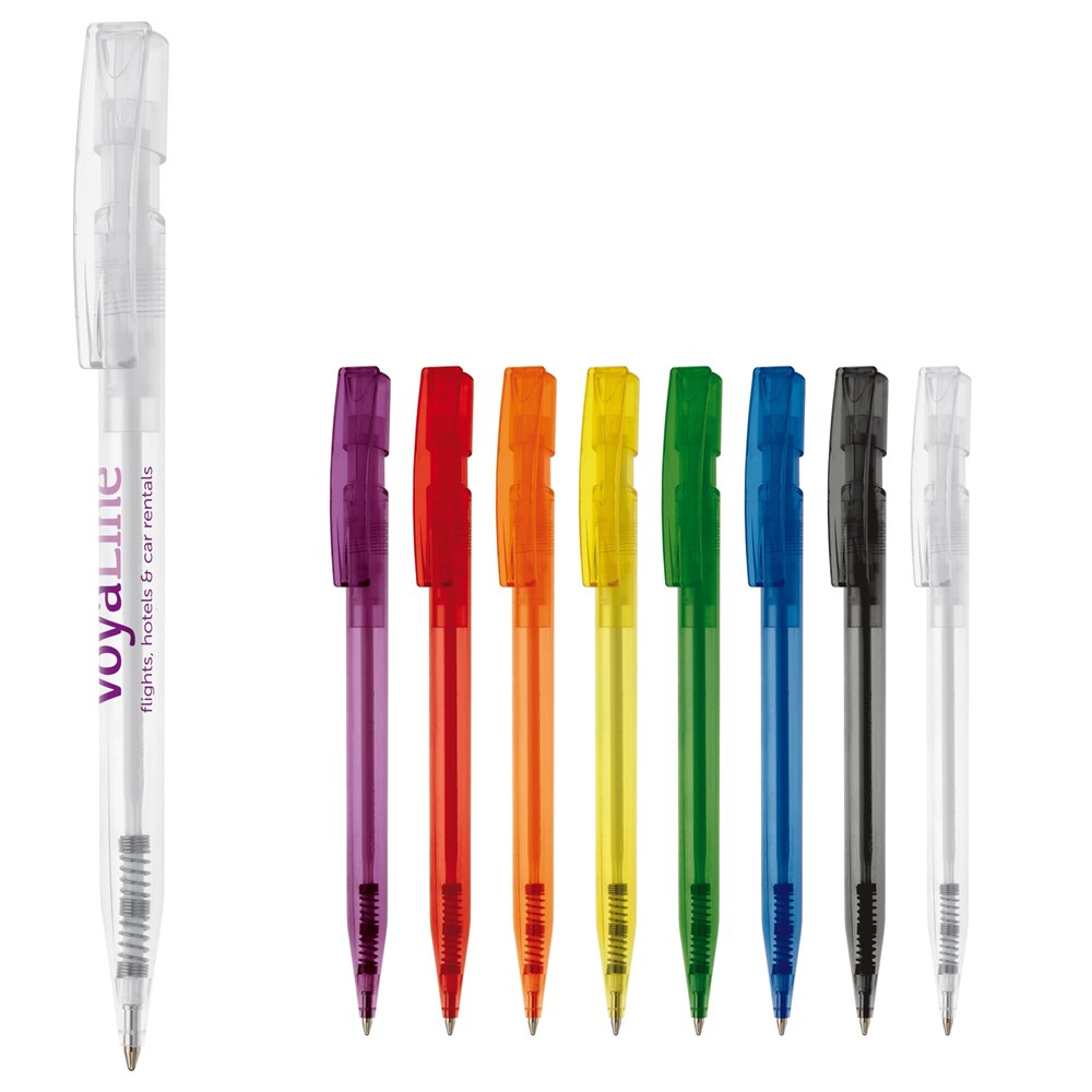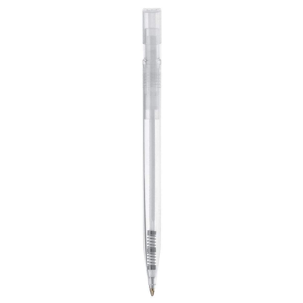 Toppoint design balpen, geproduceerd in Duitsland. Deze pen bevat een X20 vulling voor 2,5km schrijfplezier. Transparante pen met blauwschrijvende vulling.