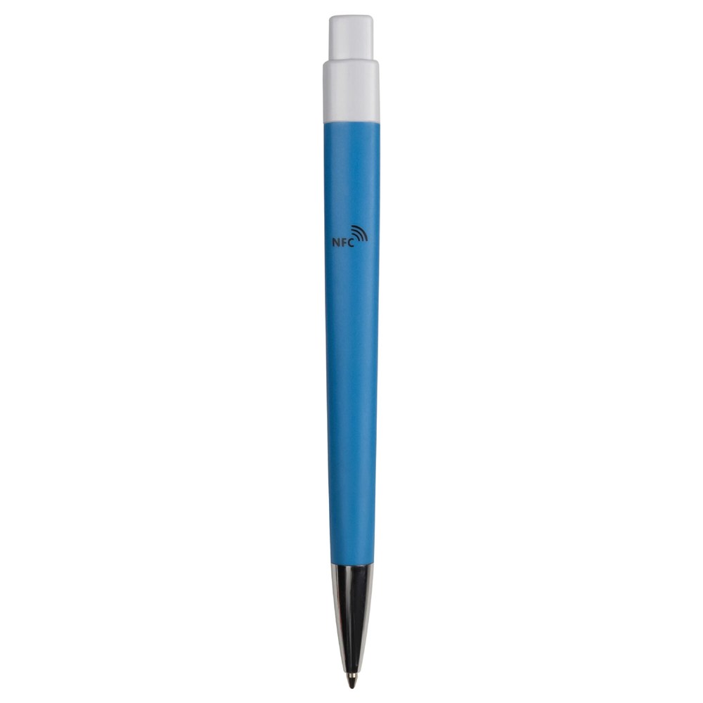 Balpen Prisma voorzien van NFC-chip. Deze chip kan worden voorzien van een digitale boodschap zoals visitekaartjes, websites en zelfs een link naar video's. Bij het scannen van het logo met een NFC capabele telefoon met interne NFC lezer, kun je het digitale bericht op je telefoon te zien. Designed by Toppoint en voorzien van blauwschrijvende jumbovulling.