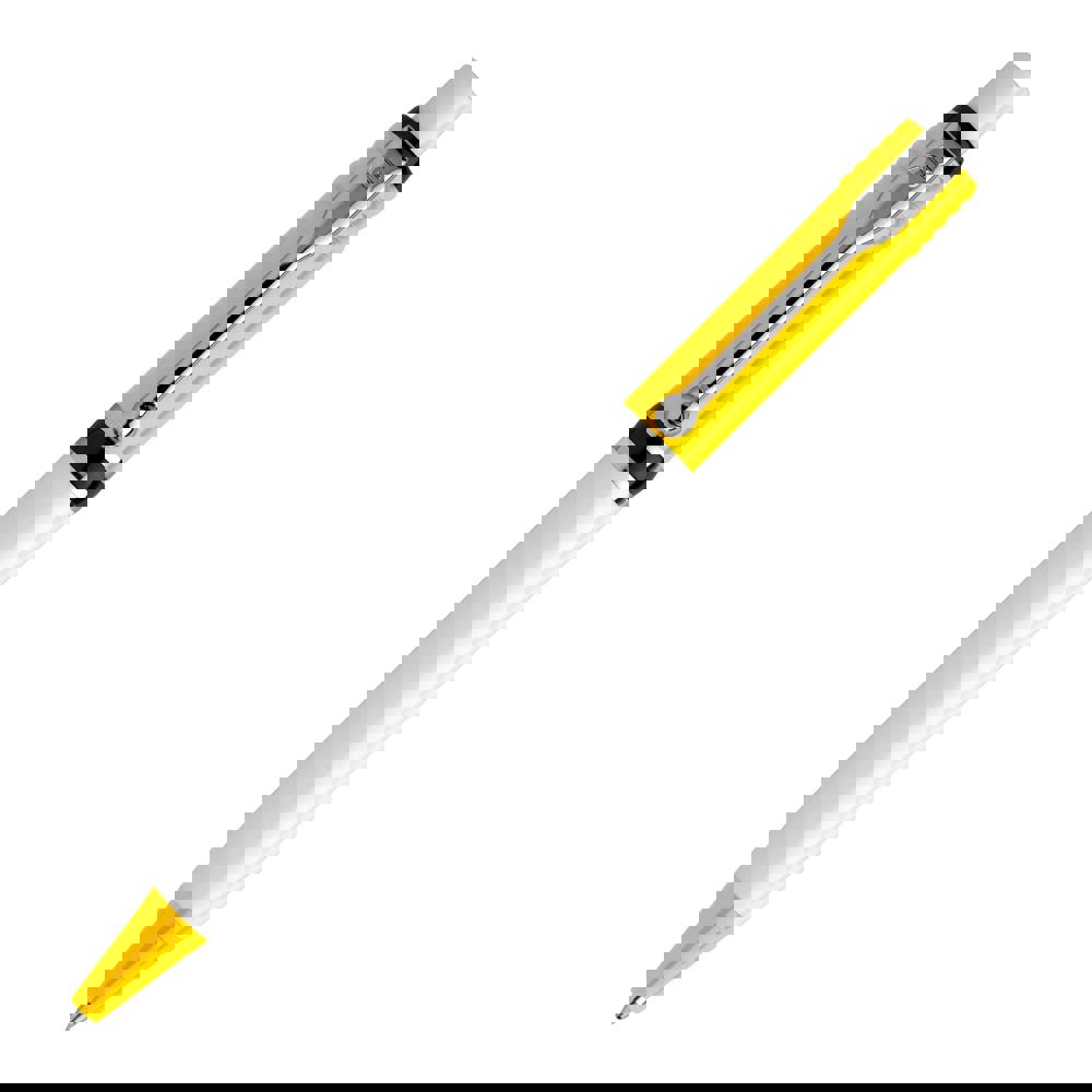 Een van de meest populaire modellen van Stilolinea is de hardcolour Raja Colour balpen met witte barrel en gekleurde onderdelen. De pen bevat een Jumbo vulling met blauw schrijvende inkt. Het heeft een drukmechaniek en is gemaakt van metaal en ABS kunststof. Geproduceerd in Europa. Kleur combinaties voor deze pen zijn mogelijk vanaf 5.000 stuks.