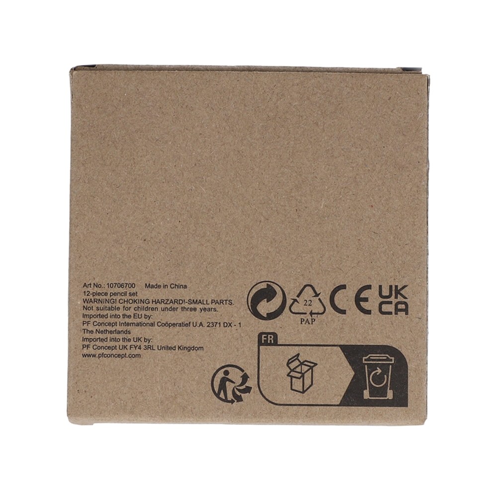 Een set van 12 levendige kleurpotloden, netjes verpakt in een kraft doosje. Deze set is ideaal voor creatieve projecten thuis, op school of onderweg en is perfect voor kinderen die graag tekenen en kleuren. Combineer het met eco digital print voor een duurzame optie die zowel leuk als milieubewust is.