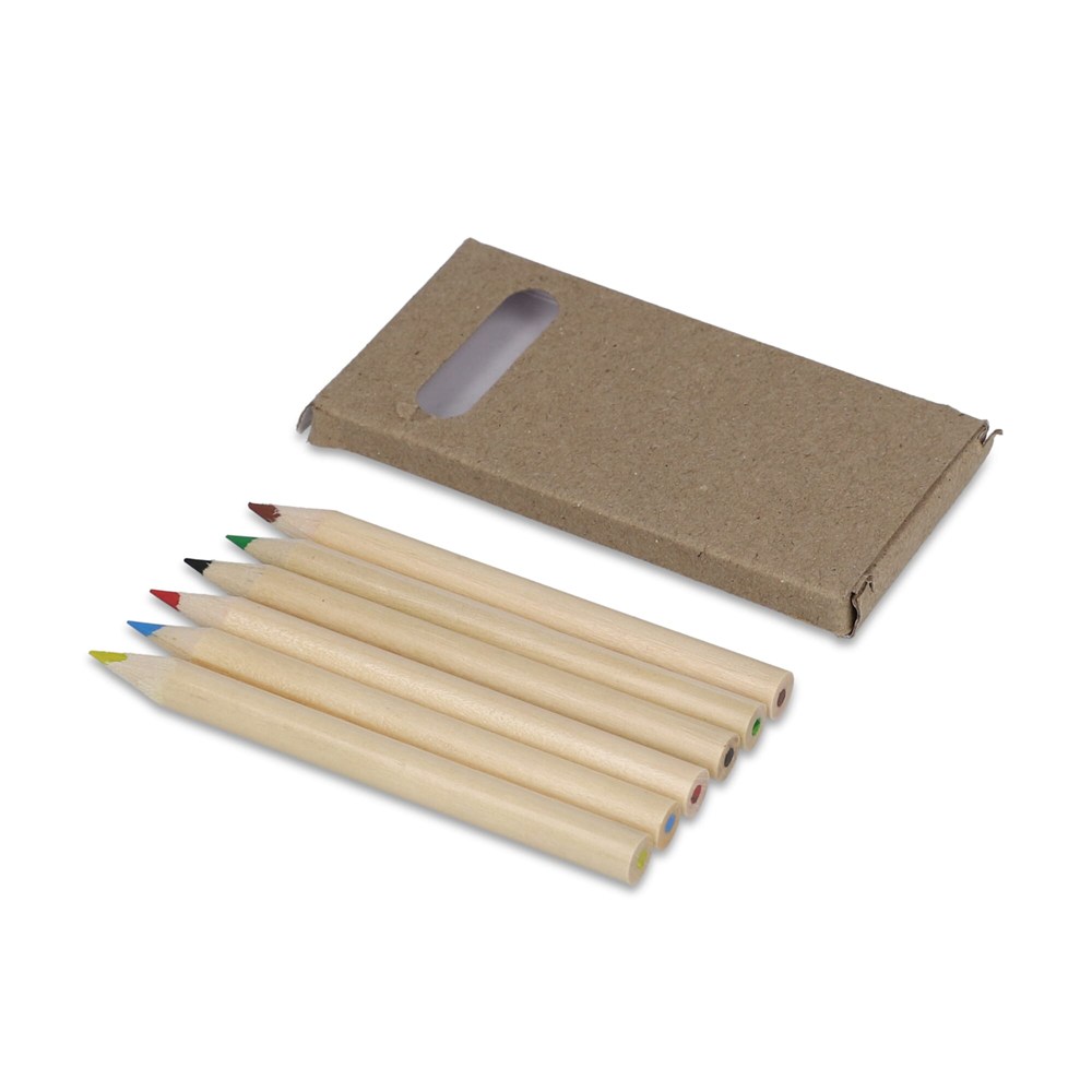 Een set van 6 kleurpotloden, netjes verpakt in een kraft doosje. Ideaal voor creatieve projecten thuis, op school of onderweg, deze set is perfect voor kinderen die graag tekenen en kleuren. Combineer het met eco digital print voor een duurzame optie die zowel leuk als milieubewust is.