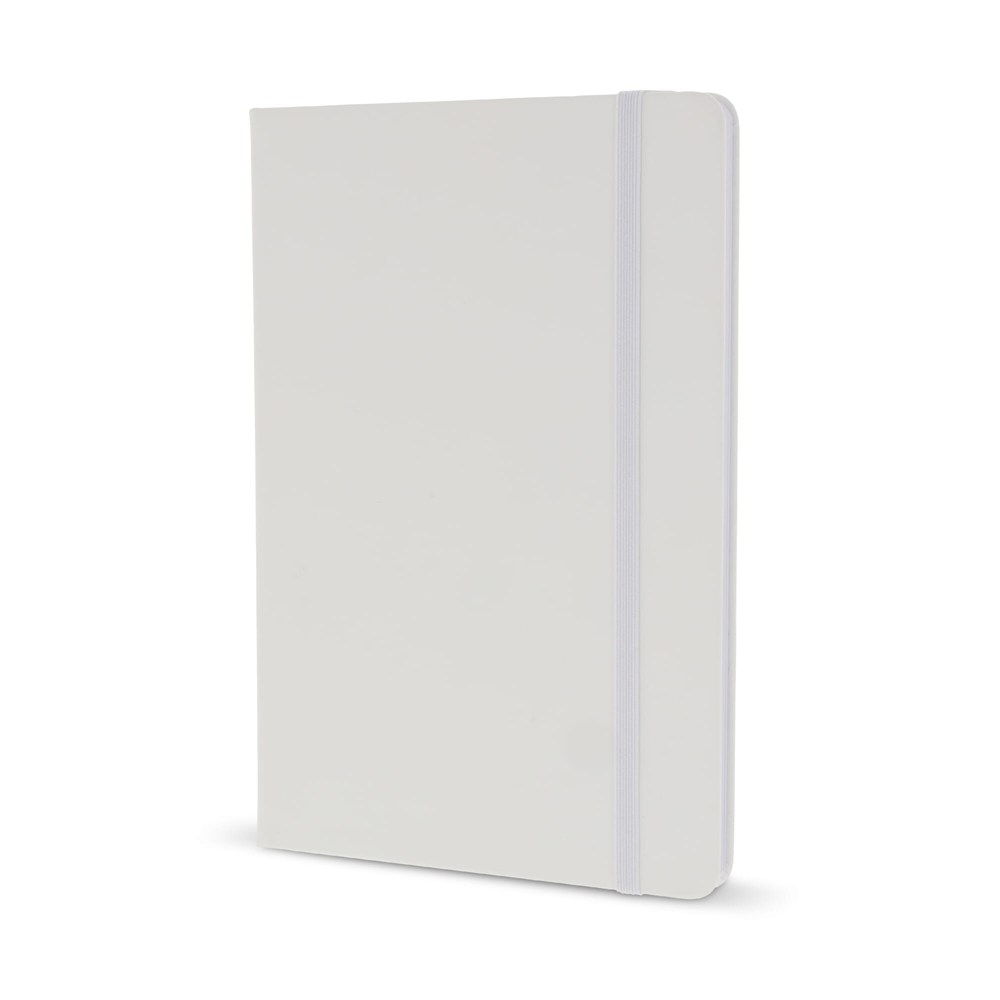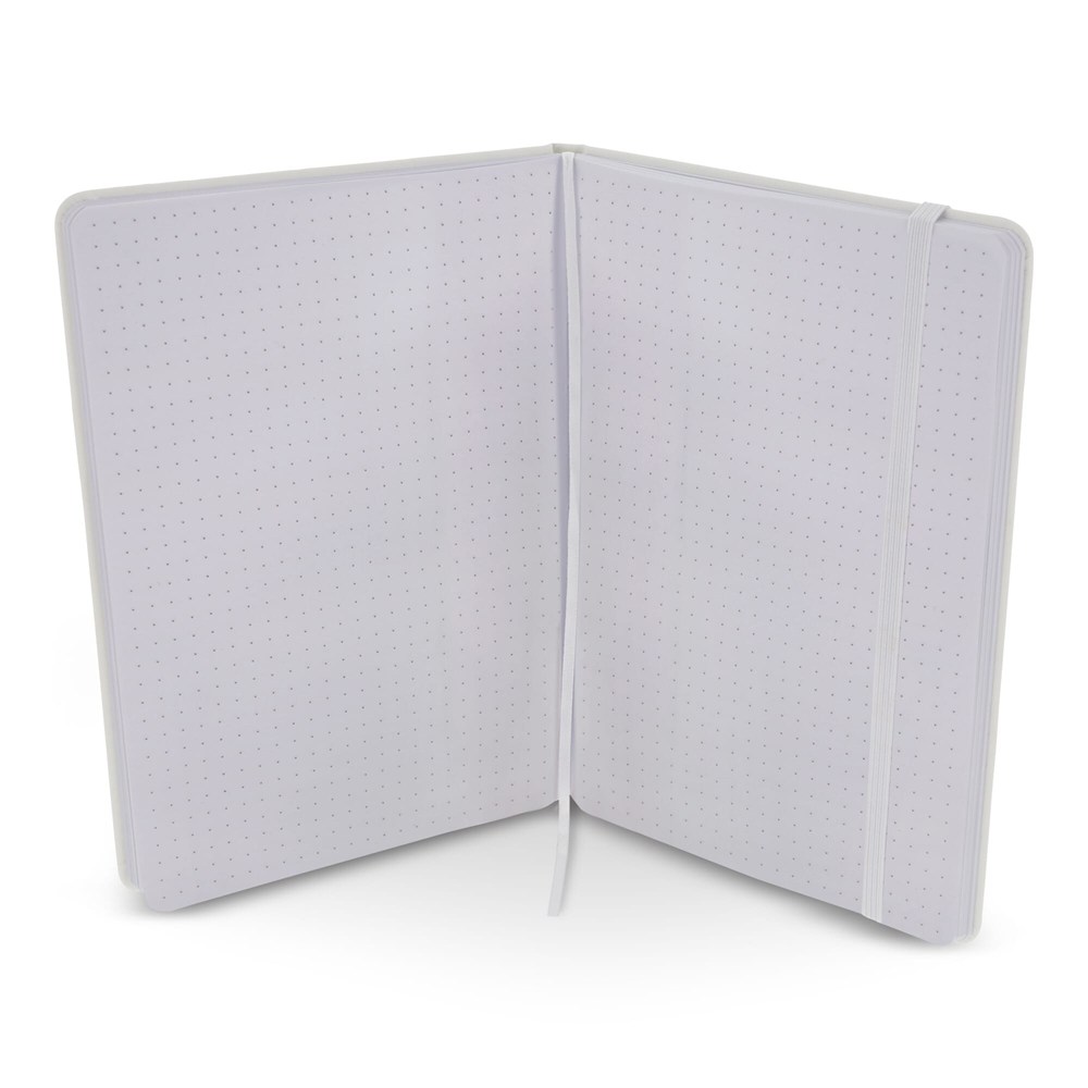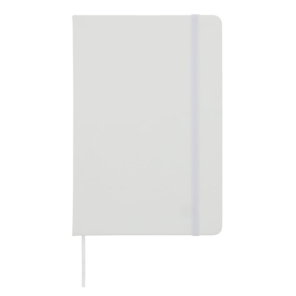 Klassiek PU notitieboek met bijpassende elastische band en lint. 96 vellen wit papier met puntraster.