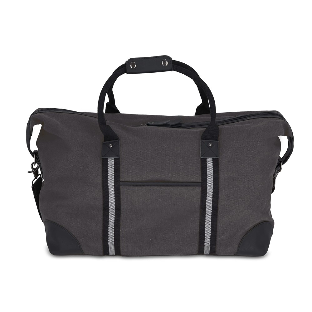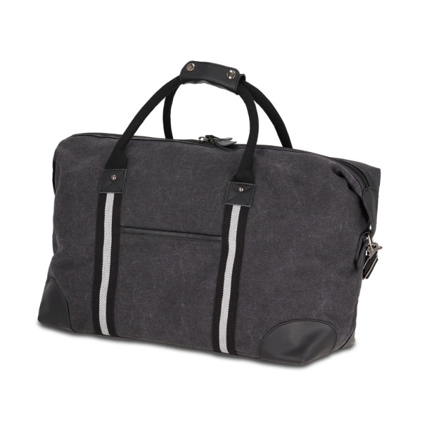 Stijlvolle weekendtas van gerecycled katoenen canvas. Met 100% gerecyclede reflecterende banden, luxe ritsen en trekkers en 100% gerecyclede polyester voering. Met verstelbare, afneembare schouderriem, 1 voorvak en 2 binnenvakken, waarvan één met ritssluiting.