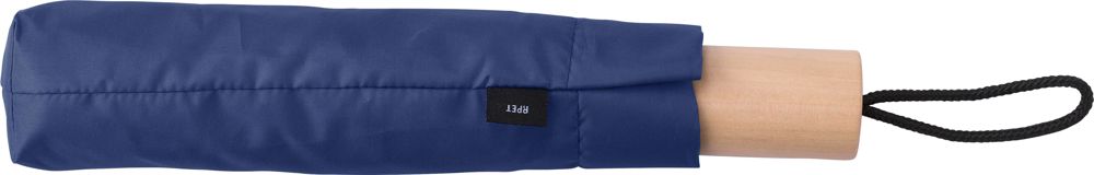 rPET 190T, opvouwbare paraplu met acht panelen en eikenhouten handvat. Inclusief beschermhoes.meer