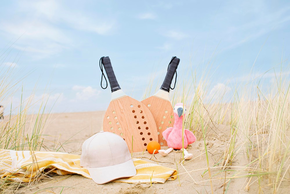 Suède pet met zes panelen en een metalen gespsluiting aan de achterkant. Gaatjes aan de voorkant van het paneel voor.