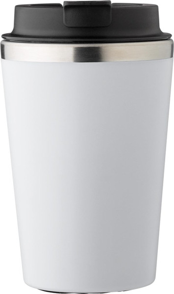 Roestvrijstalen en PP reisbeker (350 ml). Het PP-deksel heeft een siliconen sluitring met een opklapbare sluiting bovenop. Individueel verpakt in een bruine kartonnen doos.