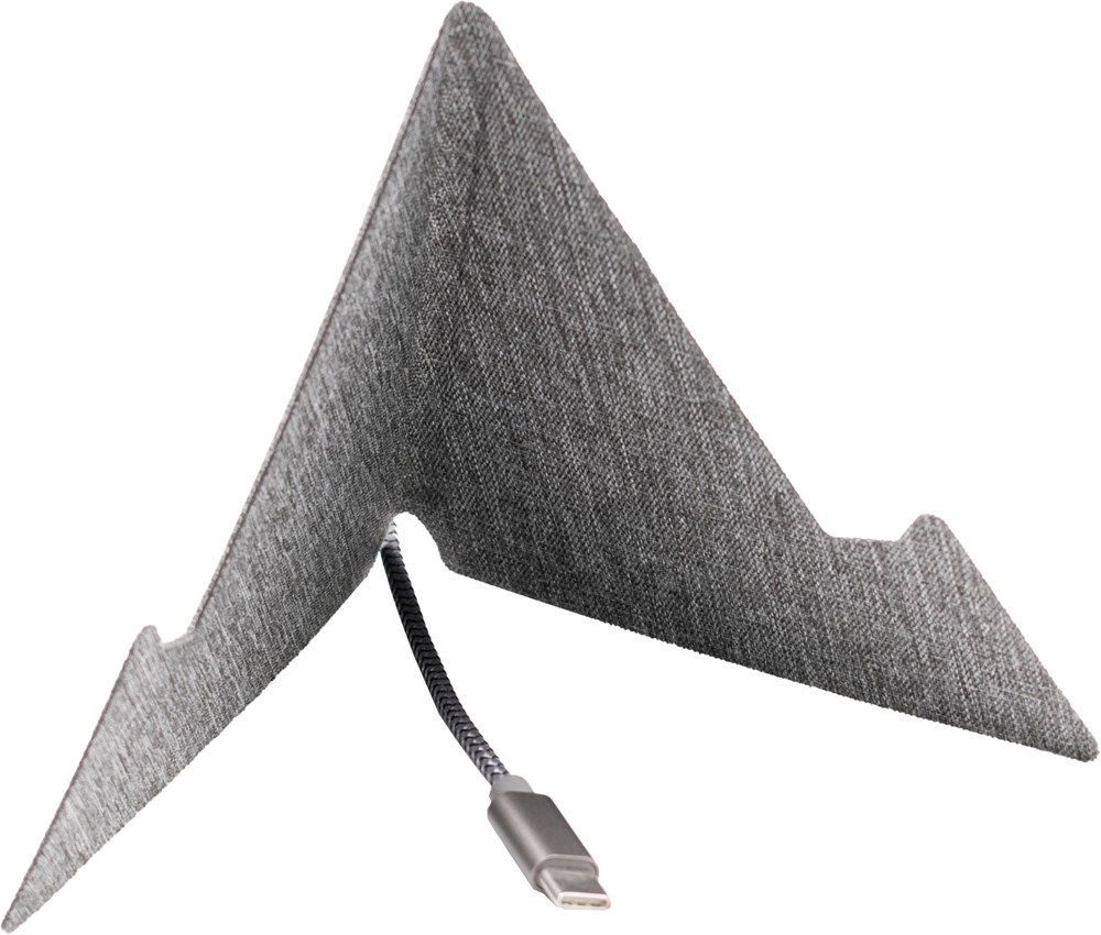 De Ascend Mini Eco telefoon- en tablethouder, gemaakt van RPET, heeft een magnetische vouwsluiting voor gemakkelijke draagbaarheid. Geschikt voor smartphones en tablets tot 13 inch en voorzien van een kabelorganizer om je werkplek netjes te houden.