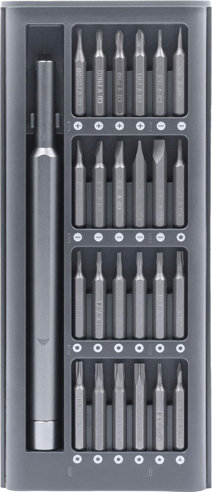 De Everybit Lite multitool is ideaal voor het repareren van een breed scala aan apparaten, zoals smartphones, MacBooks, iPads, elektronica, horloges, camera’s, laptops, brillen, printplaten, speelgoed, pc's en spelconsoles. Het bevat 24 magnetische precisiebits van duurzaam CRV-staal en een aluminium handvat voor een comfortabele grip. Perfect voor al je reparatiebehoeften.