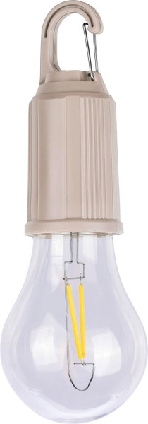 ABS gloeilamp (60 lumen) met een oplaadbare 400mAh batterij. USB-C oplaadtype. Voorzien van een metalen clip en drie lichtstanden. IPX3.