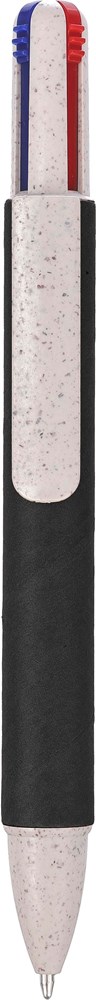 Gerecycled karton en tarwestro vierkleurenbalpen. Inktkleur vullingen: blauw, zwart, rood en groen.