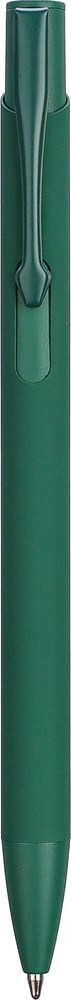 Gerecycled aluminium balpen met een rubberen coating op de houder. De clip, punt en drukknop zijn in bijpassende kleur. De clip is van metaal en de punt van plastic. Inclusief gegraveerd gerecycled aluminium logo. Blauwe inkt.