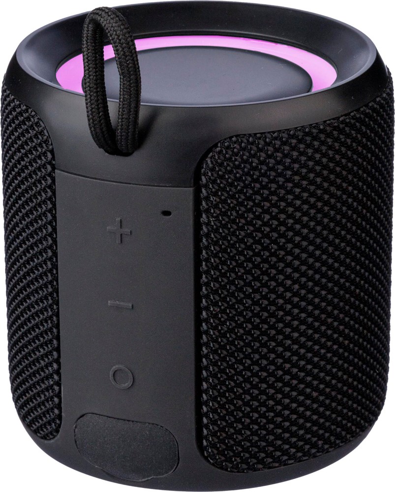 Gerecycled ABS outdoor kleurveranderende luidspreker met polsband. IPX6-gecertificeerd. Gemaakt van gerecycled ABS en stof. 10W output, DC 5V input, 1.200mAh ingebouwde oplaadbare batterij, met 4 uur speeltijd. Werkafstand van 15-20 meter, signaal-ruisverhouding van 75 dB. Frequentiebereik: 100 Hz tot 15 kHz. Inclusief 30 cm Type-C oplaadkabel. Draadloze verbindingstechnologie: 5.1. Verbind twee luidsprekers samen via TWS. Per stuk verpakt in een bruin kartonnen doos.